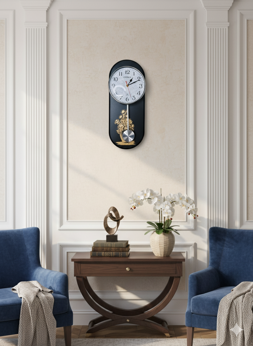 সময় দেখার জন্য ঘড়ি তো অনেক রকম পাওয়া যায়, কিন্তু ঘরের সৌন্দর্য বাড়ানোর জন্য এরকম প্রিমিয়াম ঘড়ি খুব কমই চোখে পড়ে। Citisun ব্র্যান্ডের এই ঘড়িটি একেবারেই আলাদা—সাদা ডায়ালের ভেতরে সুন্দর ডিজাইন, কালো ব্যাকগ্রাউন্ড আর নিচে সোনালী ফুলের নকশা মিলে দেয়ালে ঝোলানোর পর ঘর হয়ে উঠবে আরও নান্দনিক।
